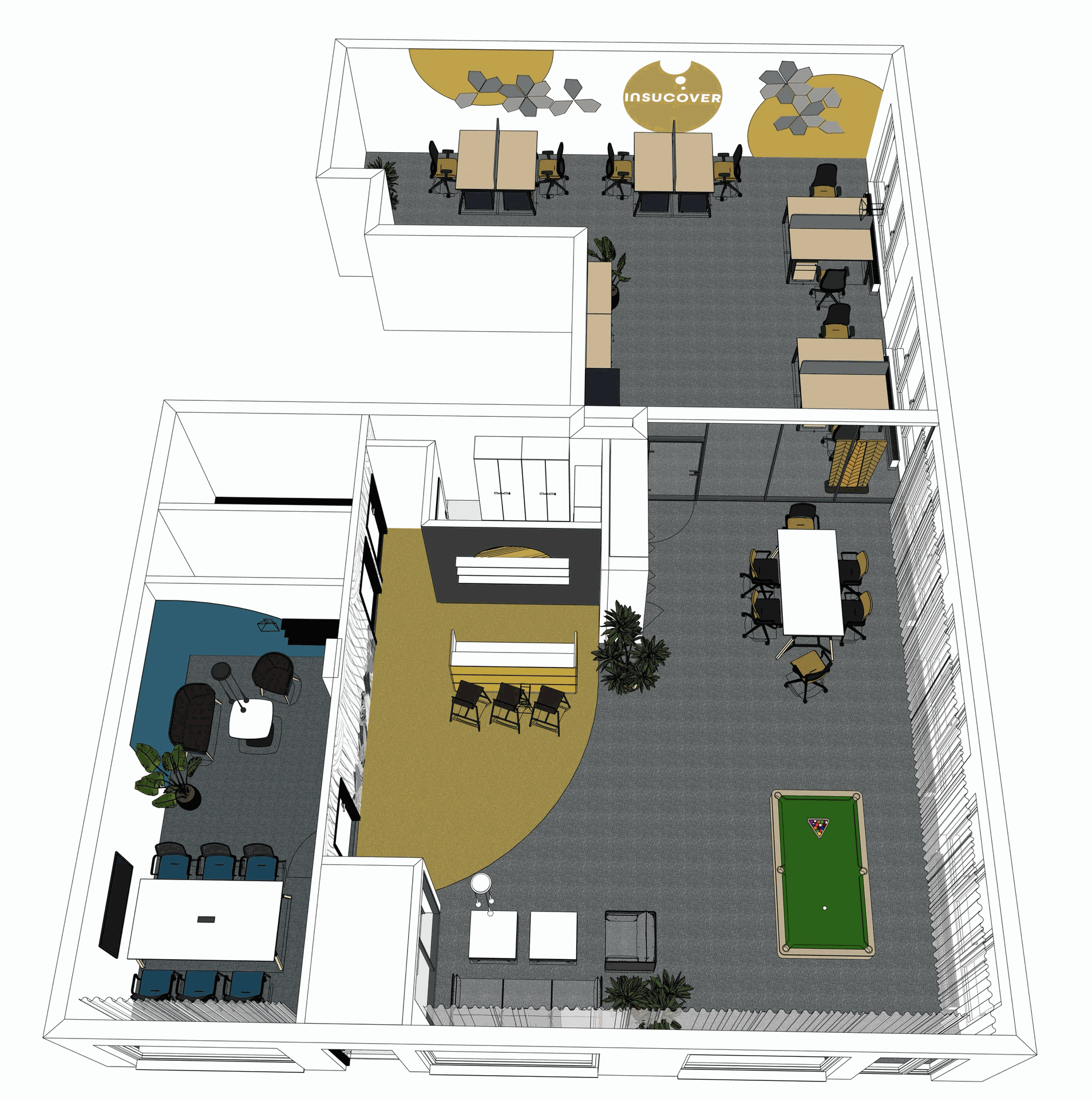 Op basis van de analyse werken onze space planners een eerste concept uit. We komen samen, overlopen een 2D-indelingen, zodat je meteen een goed beeld krijgt van de mogelijke inrichting en materiaalkeuzes.